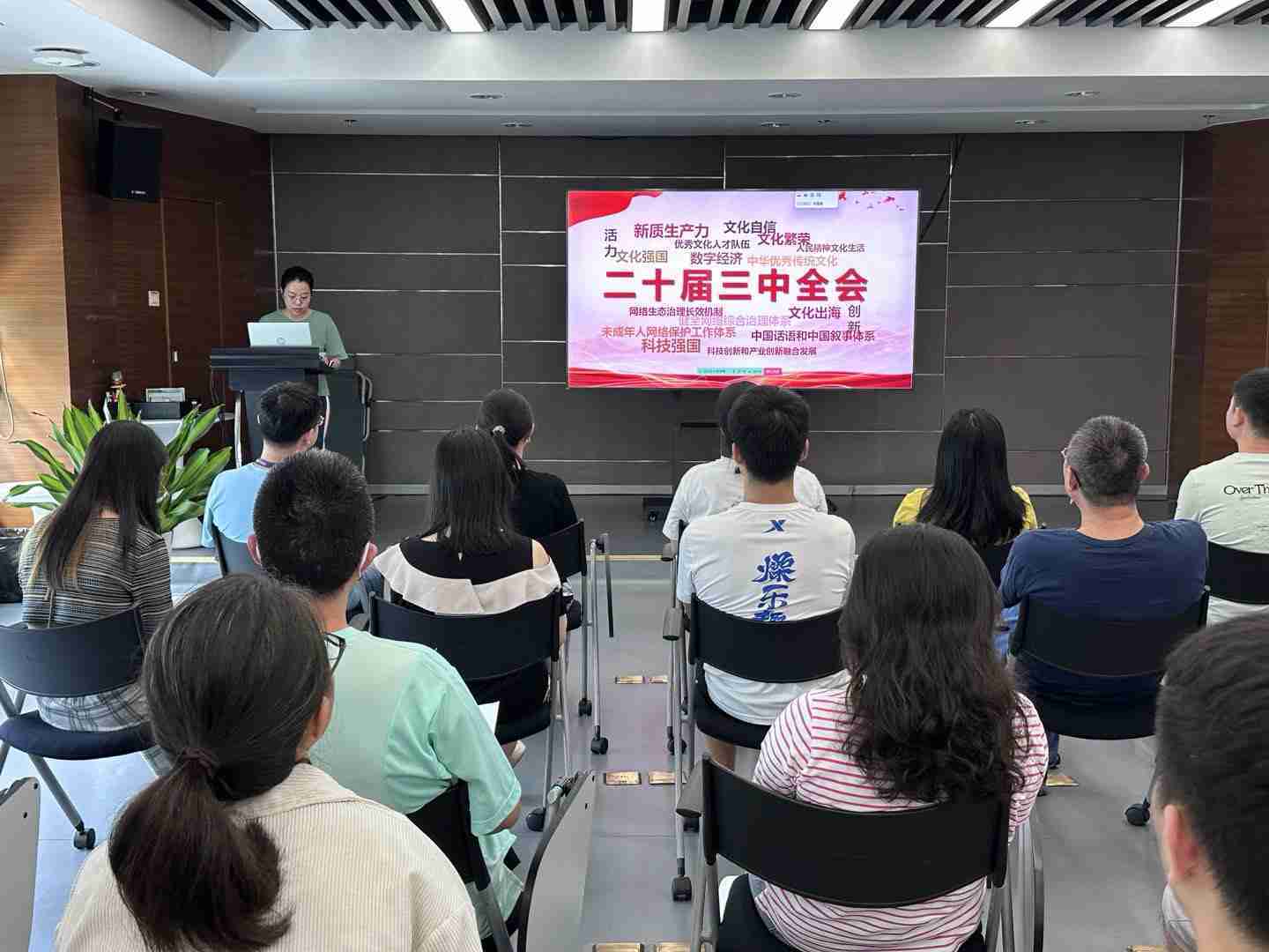 与会人员深入学习《决定》内容。。党的二十届三中全会提出必须增强文化自信,,,发展社会主义先进文化,,弘扬革命文化,,,,传承中华优秀传统文化,,加快适应信息技术迅猛发展新形势,,,构建更有效力的国际传播体系,,这为广大文化产业工作者指明了奋斗方向。。。。